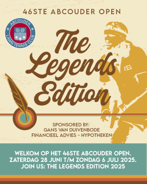 De 46ste Abcouder Open: tennistoernooi van uitersten. Wat was het weer een bijzondere week bij de Gans van Duivenbode - Abcouder Open. Wat begon als ‘The legends edition’ – om lokale en internationale tennislegendes te eren – zal de geschiedenis ingaan als het tennistoernooi van uitersten: ‘The ultimate edition!'
